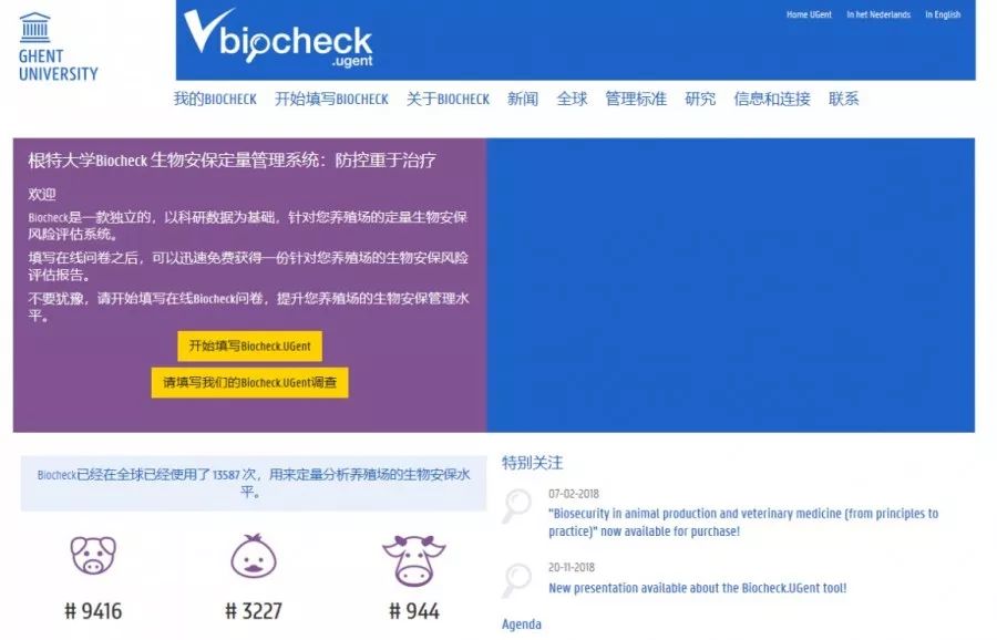 “无法度量就无法改进”,这句Kelvin Lord的经典名言也适用于生物安保管理。如果你想制定高效的生物安保方案,你必须要能够准确衡量评估你养殖场目前的生物安保管理水平,并且能够在未来较长的一段时间内持续观察评估。我的同事与我共同开发了一套实用的数据化生物安保管理工具——Biocheck-UGent® (www.biocheck.ugent.be),这项工具可以帮助养殖场制定适合自己的生物安保方案。