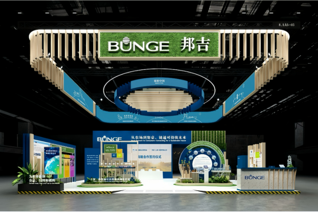 在完成与加拿大粮食贸易商蔚特(Viterra)的历史性大合并后,新的邦吉集团也首次亮相进博会。其以“从农场到餐桌,链通可持续未来”为主题,展示了整合后的全球资源、强化供应链韧性的关键举措以及在推动农业低碳转型方面的进展。